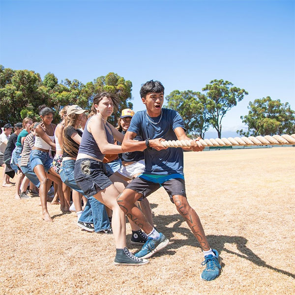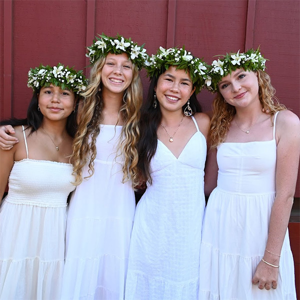 One of our longest-standing traditions is the mysterious “stealing of the Bull” where the senior class sneaks our beloved mascot off campus to transform it into their own. The tradition begins each year with a secret summer steal, followed by many coats of paint to turn it into a new character, then a big reveal at our annual Fall BBQ, and ends with the Bull settling into Kahilu Hall, where it joins the lineup of every class’s creation before it.