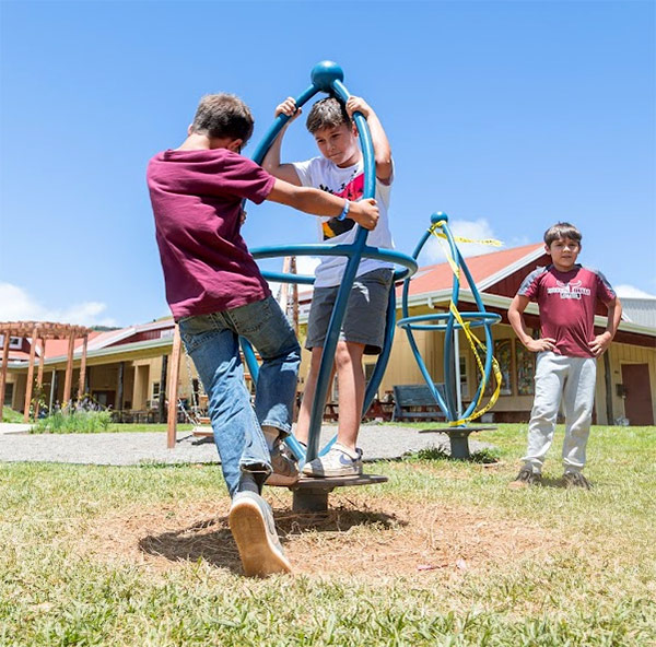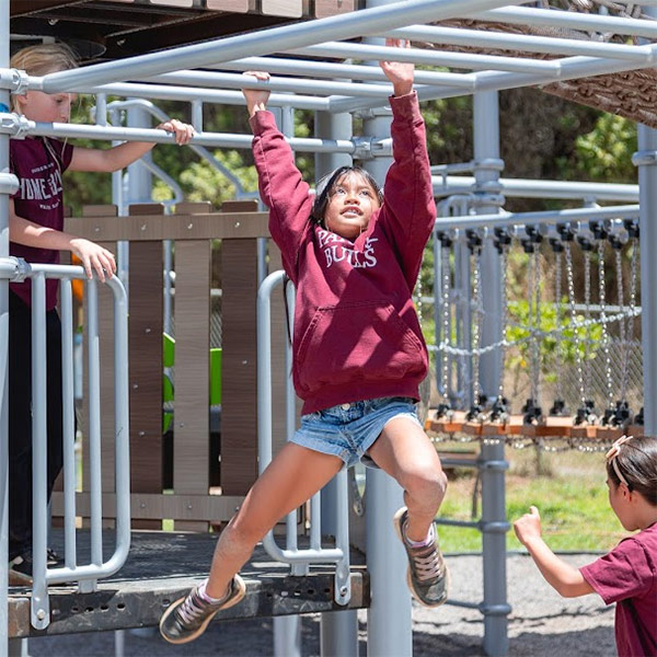 Here’s a look at the recent blessing of our new Lower School playground, led by Kumu Keala Ching. With oli, food, and the warmth of community, we welcomed this new joyful space for our keiki in Grades K-5 to play, learn, and grow. Newly reimagined, this outdoor play area encourages curiosity and play-based learning and includes slides, bridges, mounds, tunnels, tree stump steppers, climbing wall, riding track, tetherball, integrated gardens, and an amphitheater with seats for outdoor learning.